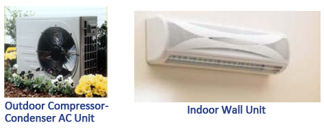 Like central air conditioning units, mini split air conditioners have two main components: an outdoor compressor/condenser, and an indoor air-handling unit. A conduit, which houses the power cable, refrigerant tubing, suction tubing, and a condensate drain, links the outdoor and indoor units through a small hole that is drilled in the wall of the building. The main advantages of split air conditioners are their small size and flexibility for zoning, heating, or cooling individual rooms. Some split air conditioners can have as many as four indoor, air handling units (for four zones or rooms) connected to one outdoor unit. The number depends on the amount of heating or cooling required for each building or zone (also affected by how well the building is insulated). Since each of the split air conditioner zones or rooms will have an individual thermostat, only that area where someone is present needs to be conditioned, saving energy and money.